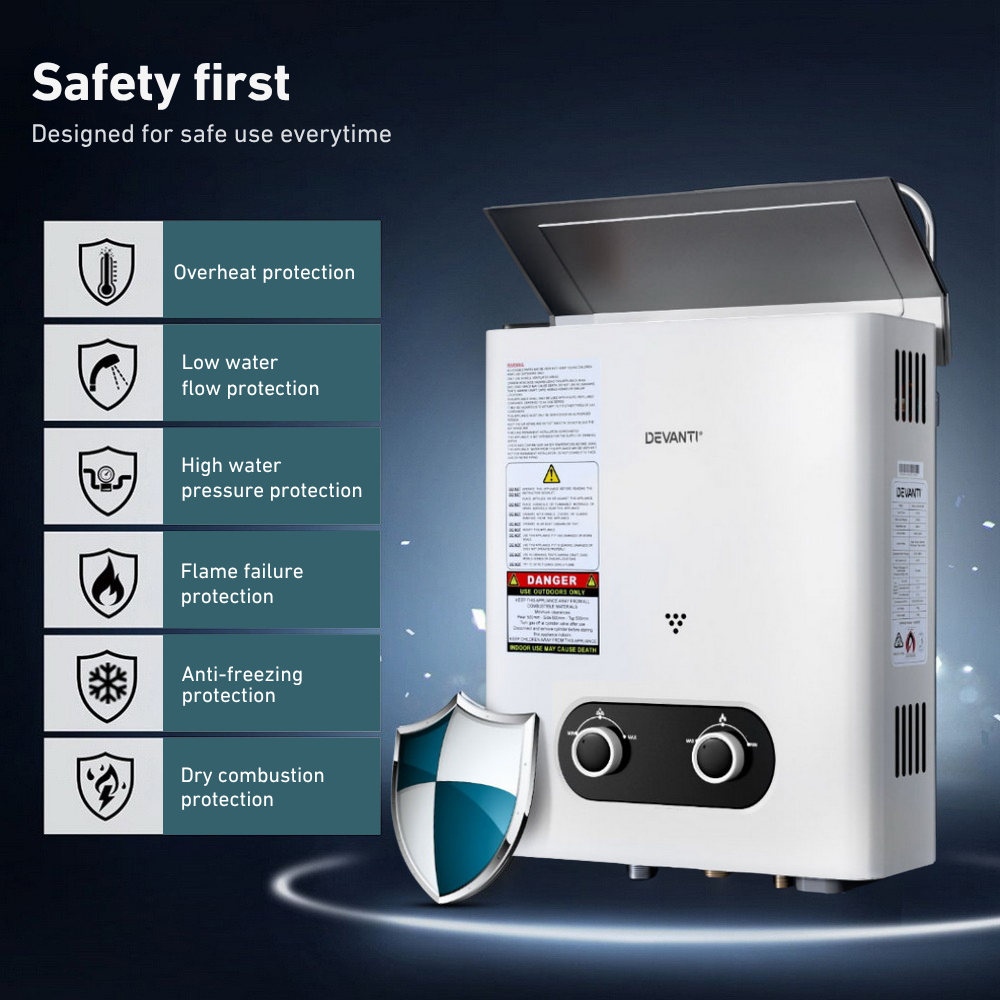 Devanti Portable Gas Water Heater LPG-Powered System - White